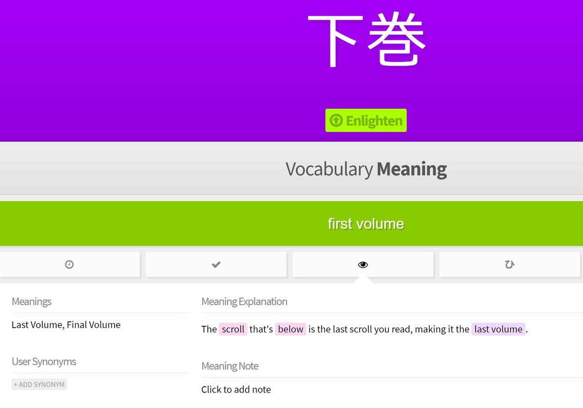 I thought I’d point this out. It’s been confusing me for a long time. 下巻 will accept “First Volume” as correct when actually that’s the opposite of the right answer.