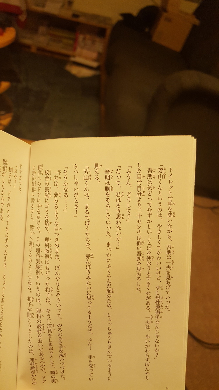 - Is an actual book, so has much more text than most manga