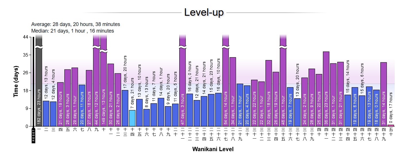 Speaking of which, I just got to lv 59. This is the last level I have any (self imposed) time constrain to do the lessons and reviews. On lv60 there is no more level up, so maybe I will take a year or so doing lessons haha.