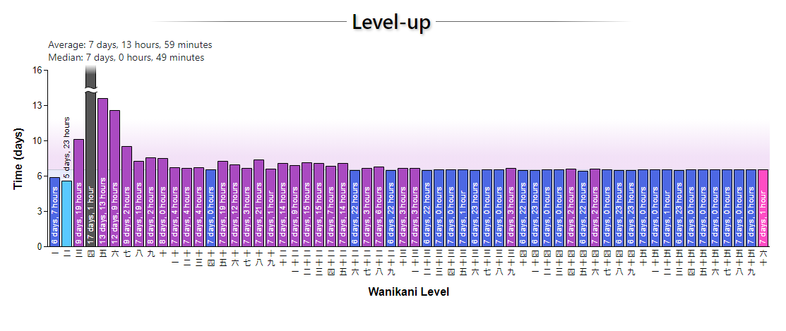 I recently guru’d all of the kanji for level 60 and did every lesson. I’m sure there’ll eventually be more, though. I would write a post reflecting on my journey, but I don’t feel like that. Instead, I’ll do this in an AMA style. Feel free to ask my any questions about my WaniKani journey or learning Japanese, and I’ll try to answer them.