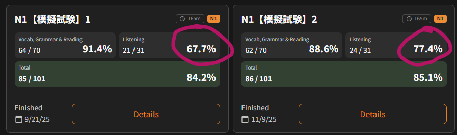 One weakness with BP’s listening section is that they don’t have the pre-question blabber as audio, it’s just text at the top. The audio file just goes straight into question mode. It’s good because it saves time having to skip past, but I think at the start of each question section should have that audio still. As it is now, makes you have to pause, then read the question format first while time is ticking down. At the jlpt, there’s instruction in the audio regarding whether you’re supposed to listen first or read the options first or after.