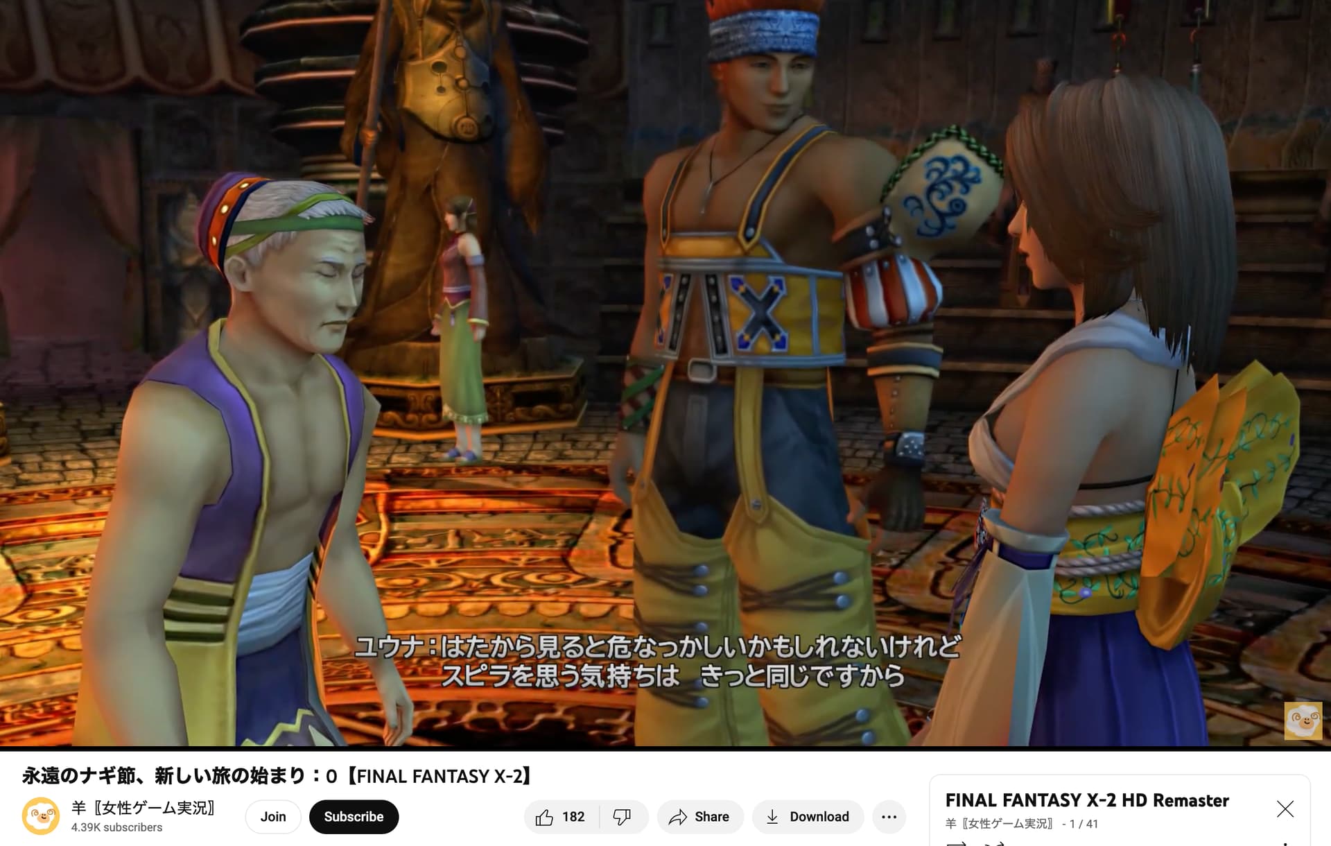 i found a different let’s-play streamer for ffx-2 named Hitsuji羊 and she’s never played this game before! she’s a bit more lively than the guy from yesterday’s video, so i don’t mind stepping back slightly in the story to hear her thoughts as she plays. she included the Eternal Calm interlude, which most people skip, so it was nice to see it again. it’s exciting to hear live reactions from someone who hasn’t played the game before and doesn’t have every single moment memorized beat-by-beat (like me aha) ![]()