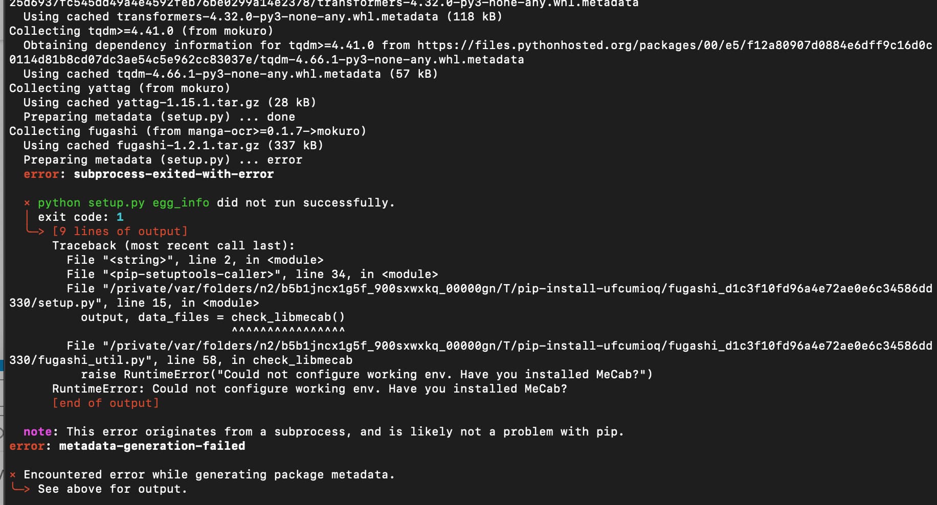 After that I did a reset and ran the $ pip3 install mokuro and that worked just fine!!!