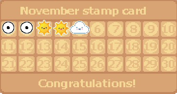 wah! A challenge! I had to get my husband to help me out with figuring out how to do this stamp card, BUT here we are! Unfortunately I missed out on this one earlier in the month, but I was working on finishing Quartet 2 at the beginning of the month, hence the days that were stamped. Woo-woo! I started today’s grammar work by continuing to work through Tokini Andy’s Quartet 2 playlist 2/19. I’ve continued watched almost all of his Genki and Quartet playlists up until the last book, so this is a good time to review what I’ve read and finish it up. Maybe I can finish by December? That might be a good idea, its been a while since I’ve had a goal other than have fun and meander around ^-^