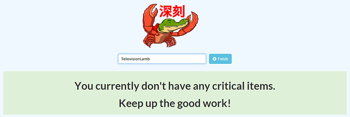 I just noticed something - the Critical Items API returns all items, which also includes burned items. This means that burned items will always show up (because they’re burned and you never have a chance to affect its percentage). There’s currently no way to filter these out without making additional API calls, which I want to avoid since it’s not practical. I’ll probably bug Viet a bit about this.
