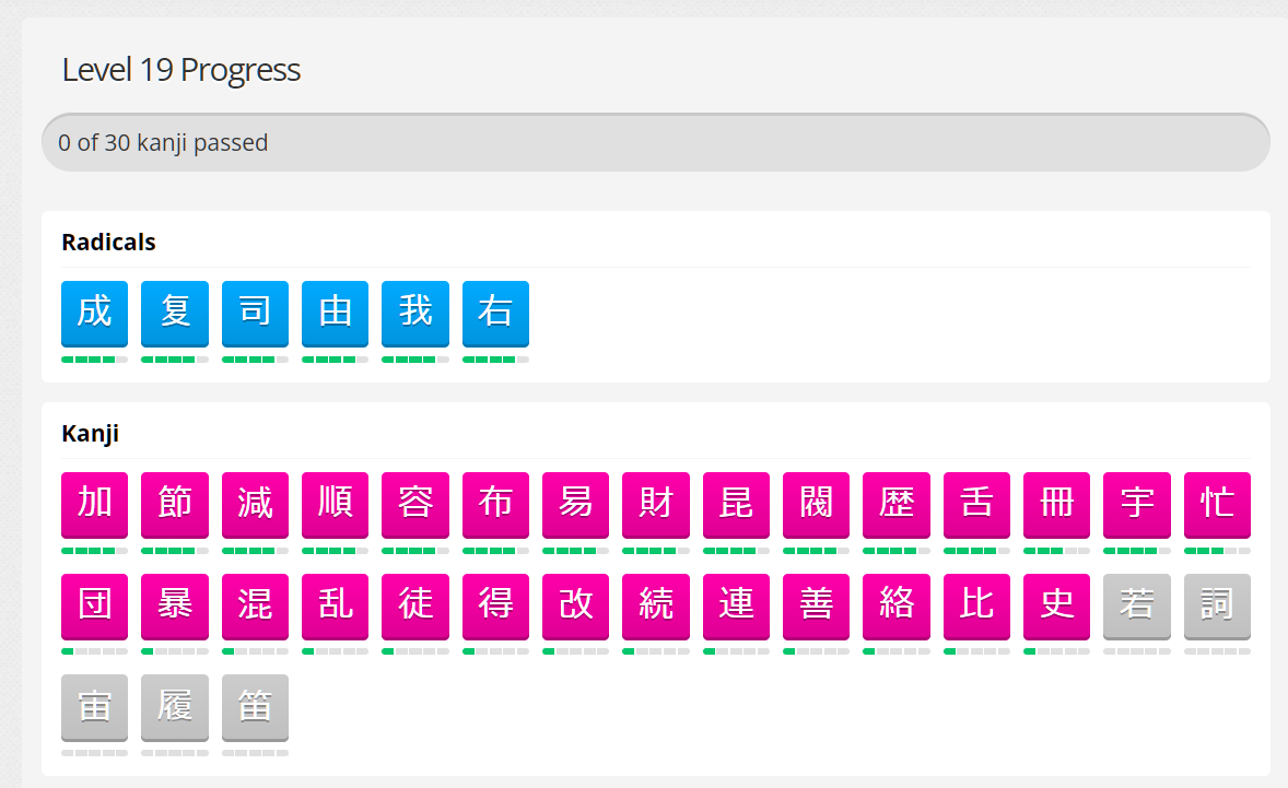 (I may or may not have cleared out all my lessons at the sign of all those radicals about to unlock new vocab)
