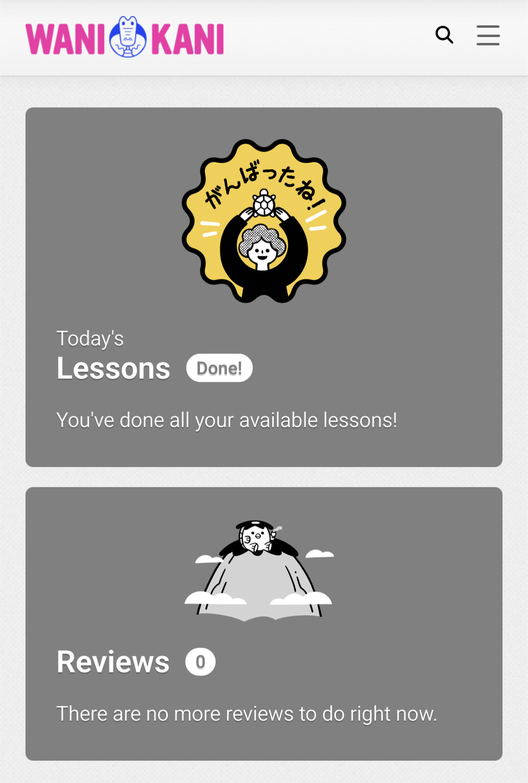 And even though the screenshot is from Tsurukame, today’s reviews were actually done on Smouldering Durtles.
