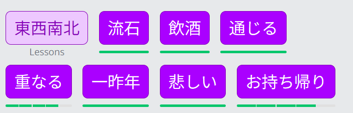 the blocks of grey tell me how many kanji lessons to do per day without needing to count and double, triple, quadruple check to make sure i’m doing the correct amount for how quickly(slowly) i want to level up